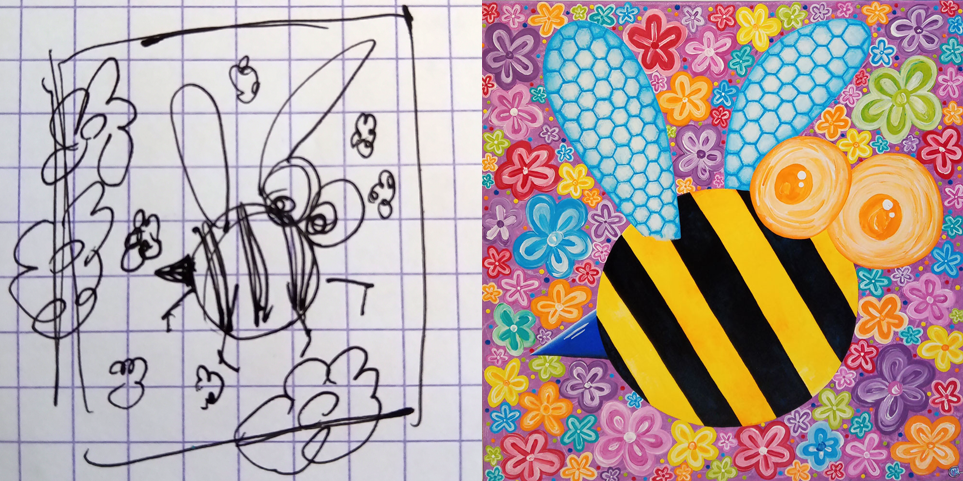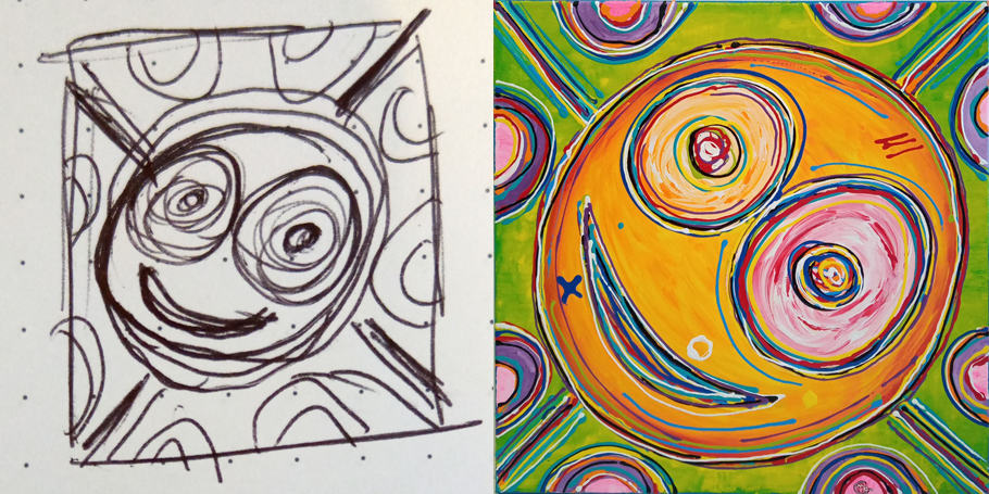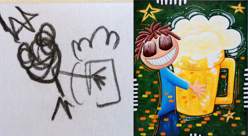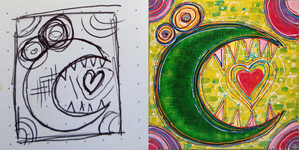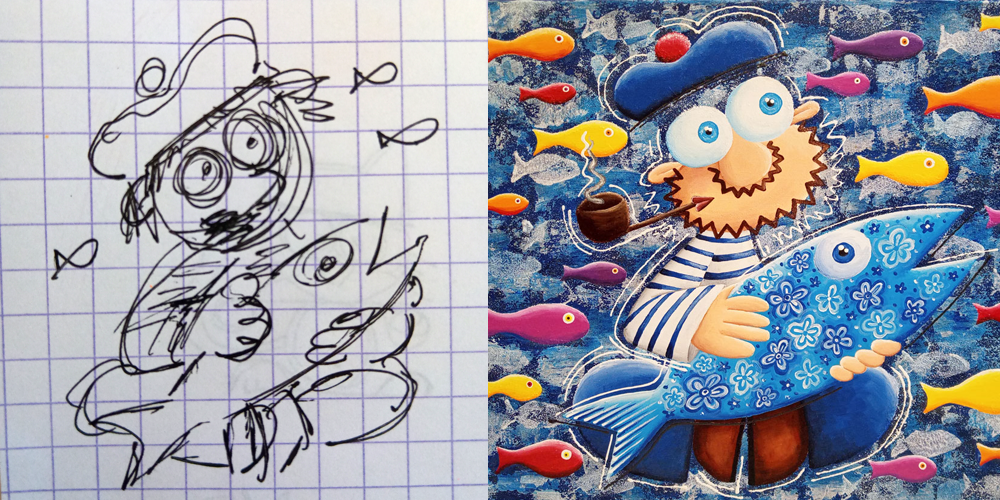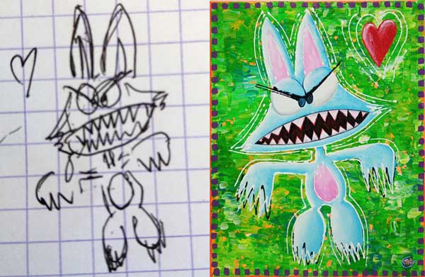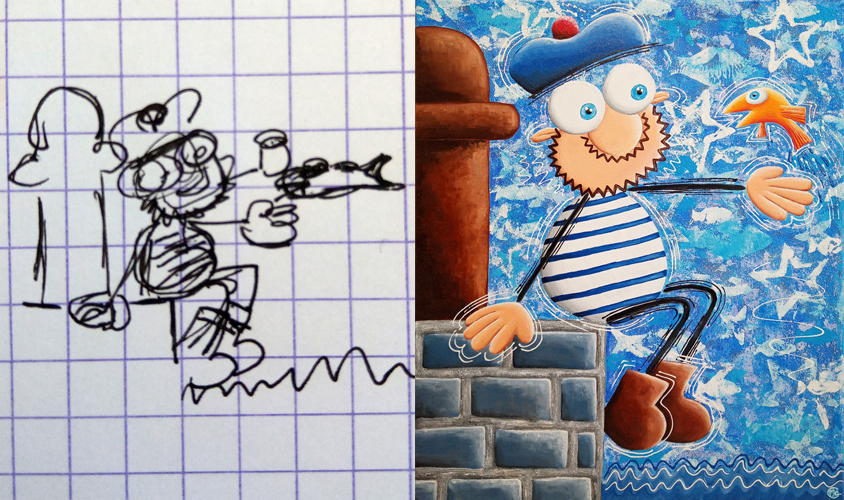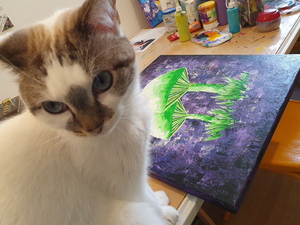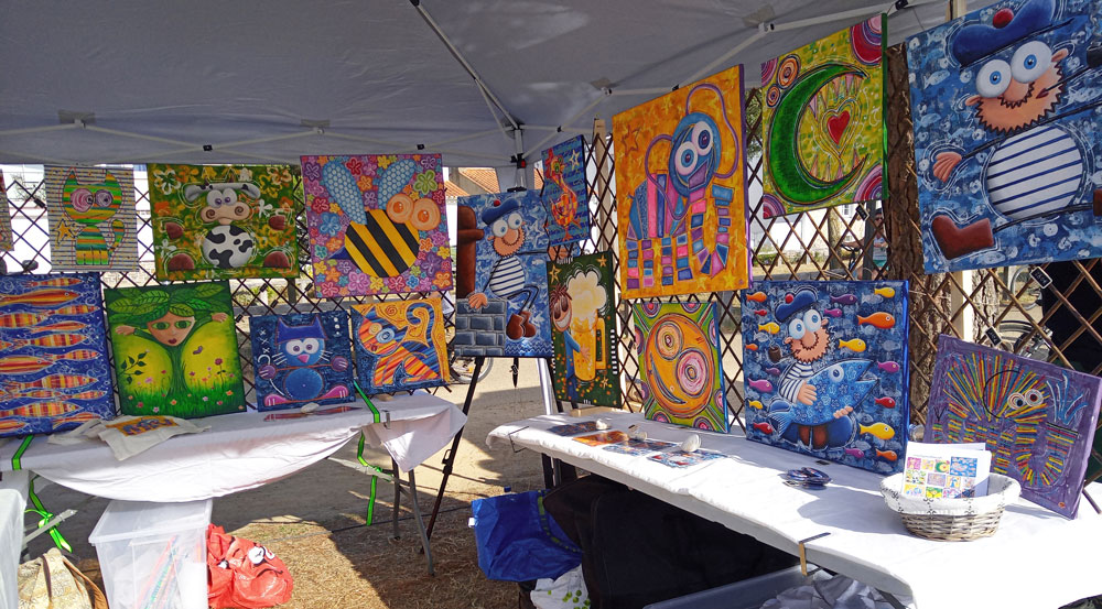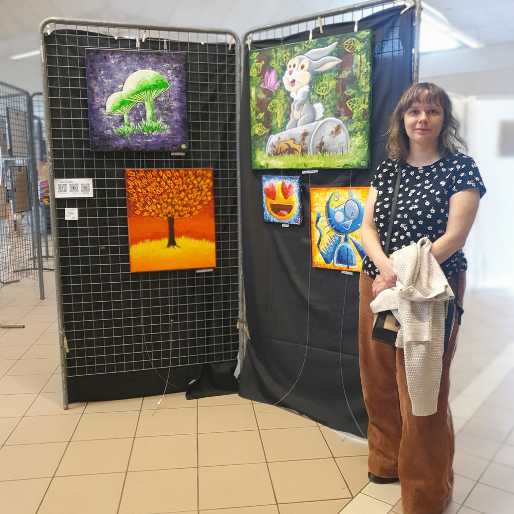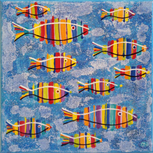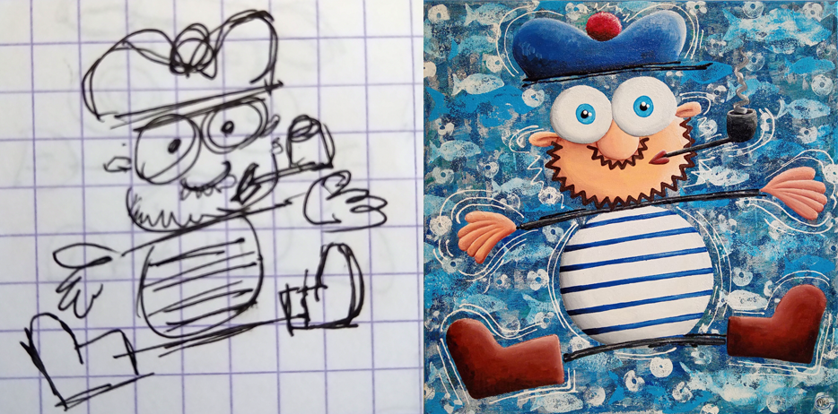 Avec de la peinture acrylique, une touche de sable et un peu d’humour, mes œuvres prennent vie ! Elles font appel à votre imaginaire et vous invitent à sourire 🙂
