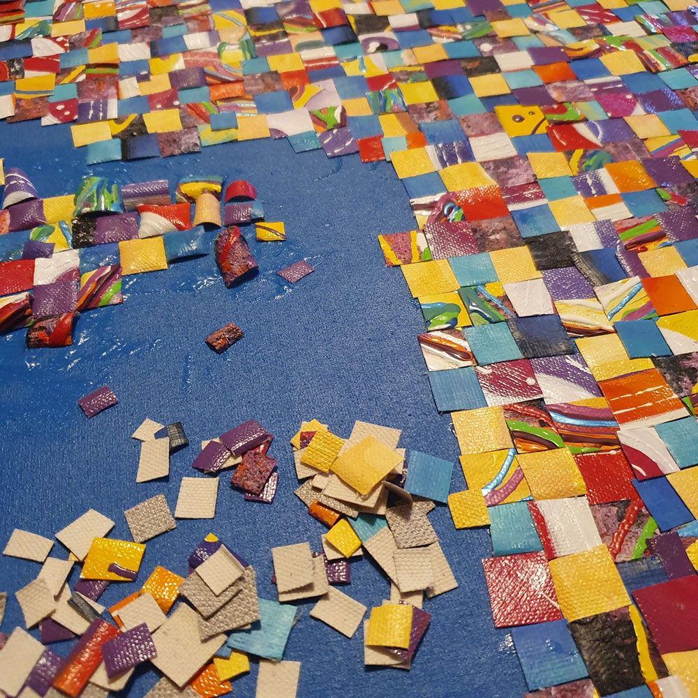 J’utilise essentiellement l’acrylique, j’adore sa texture et les façons dont on peut l’utiliser.