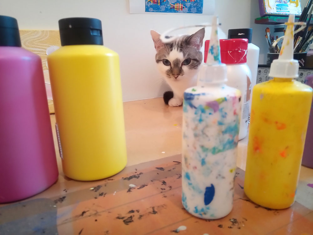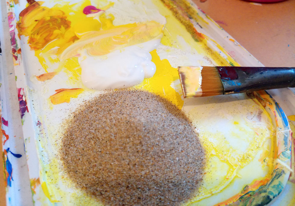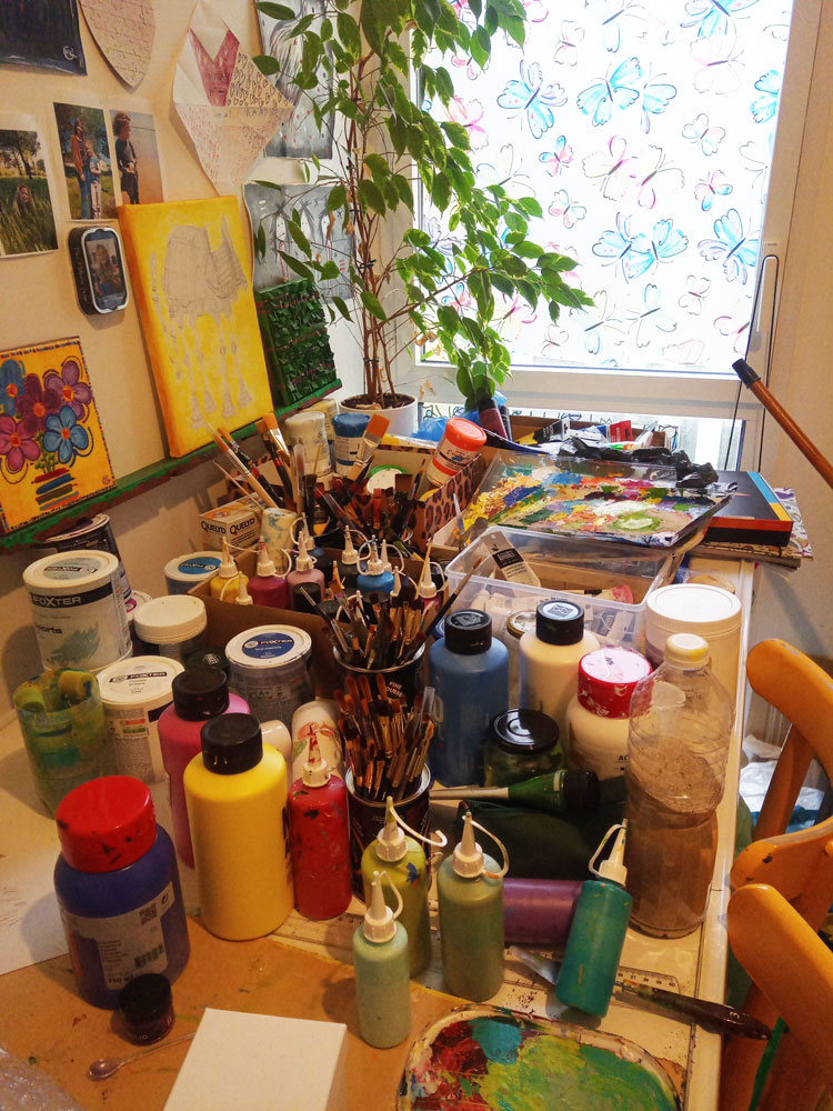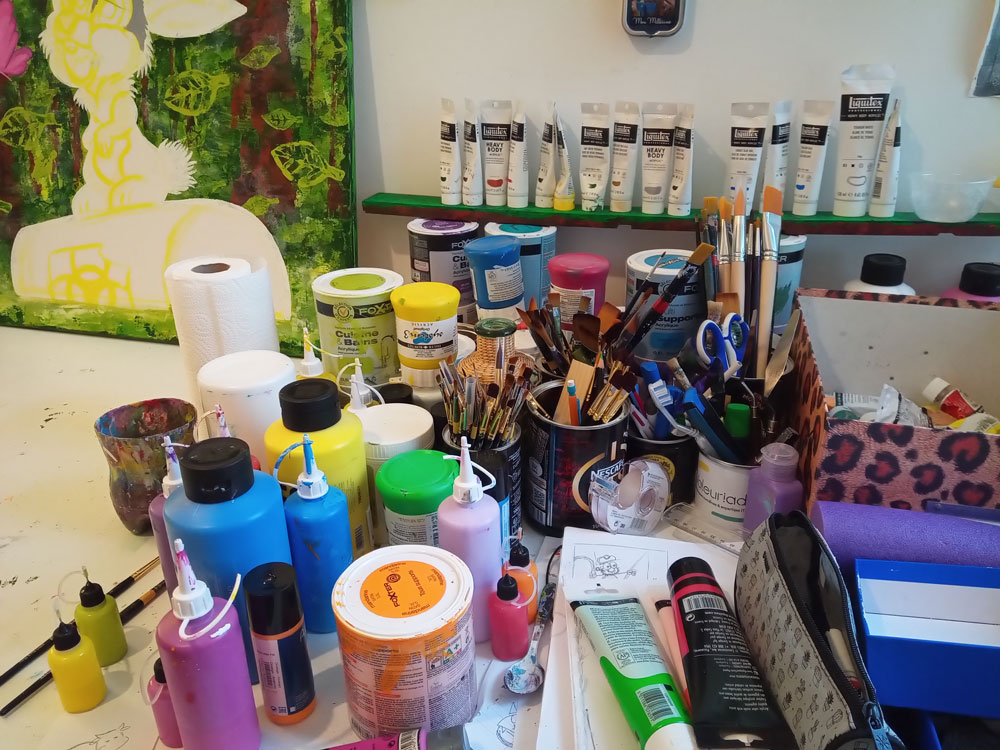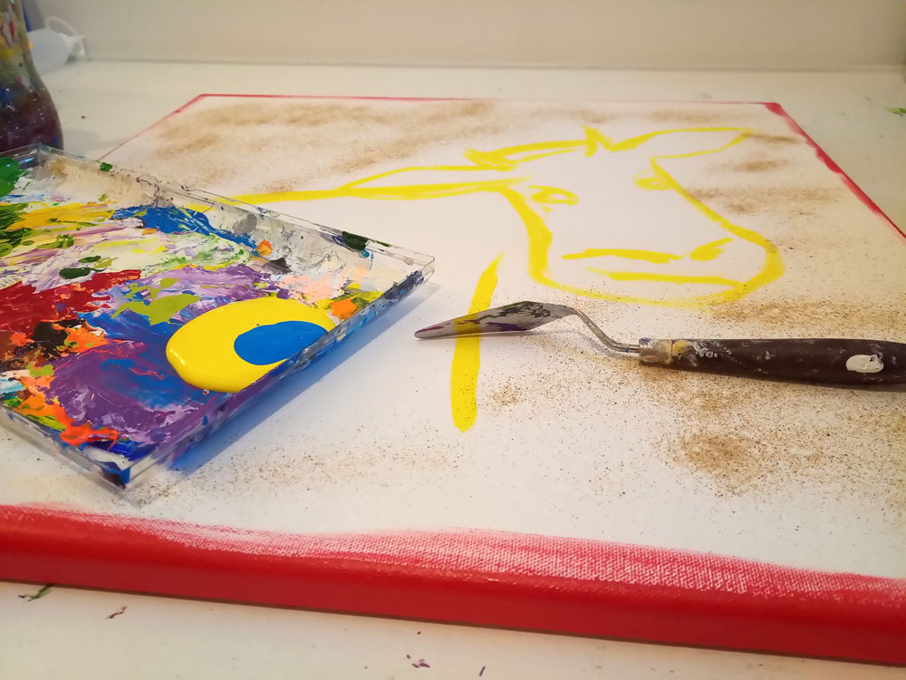 Des toiles, de la peinture, du sable, des pinceaux, des couteaux, etc… et un peu de magie ✨