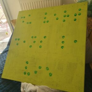 « Du vert dans la vie » – 80x80cmPar maud / 25 décembre 2024 80x80cmCollage toile et peinture acrylique, touche de sable.Toile sur châssis.🟢 Disponible